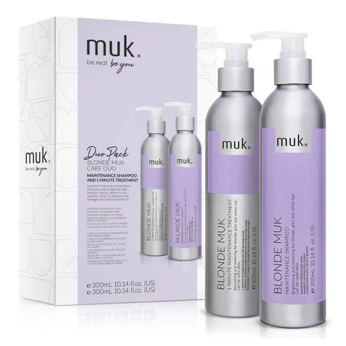 The Muk Blonde Muk Toning Shampoo and Toning Treatment Duo Pack is the perfect solution for maintaining vibrant blonde hair.