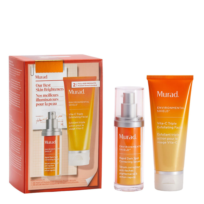 This carefully curated pack combines two of Murad's most effective skin brightening products to help you achieve a luminous glow. The Vita-C Triple Exfoliating Facial works to gently exfoliate and renew your skin, while the Rapid Dark Spot Correcting Serum targets and reduces the appearance of dark spots and hyperpigmentation. Together, these products provide a comprehensive approach to skin brightening, leaving your skin looking refreshed and revitalized.