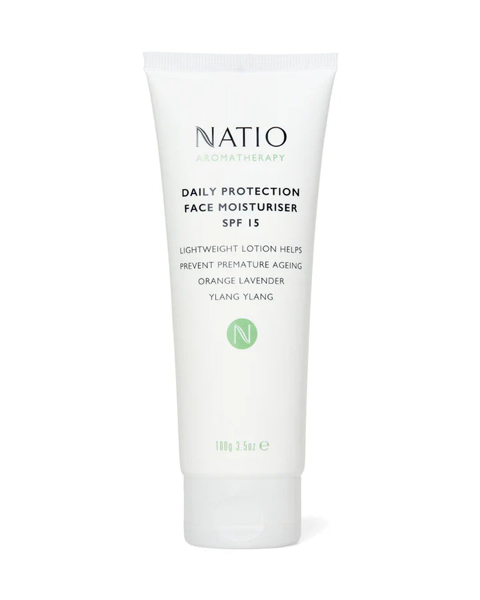 Natio Daily Protection Face Moisturiser SPF 15+ 100g is a lightweight 2-in-1 face moisturizer that hydrates and protects your skin from the sun's harmful rays with its SPF 15 formulation enriched with pure essential oils.