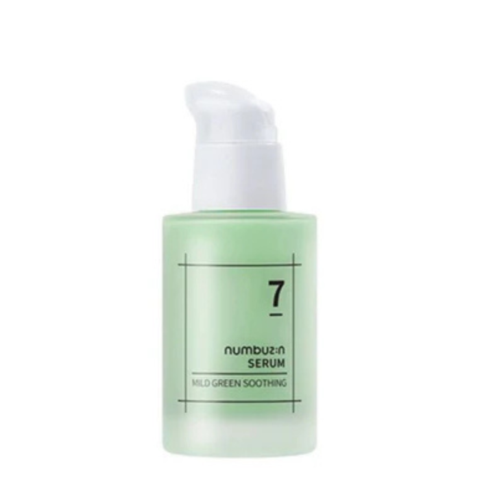 The Numbuzin No.7 Mild Green Soothing Serum 50ml is a calming skincare solution designed to soothe and rejuvenate sensitive skin.