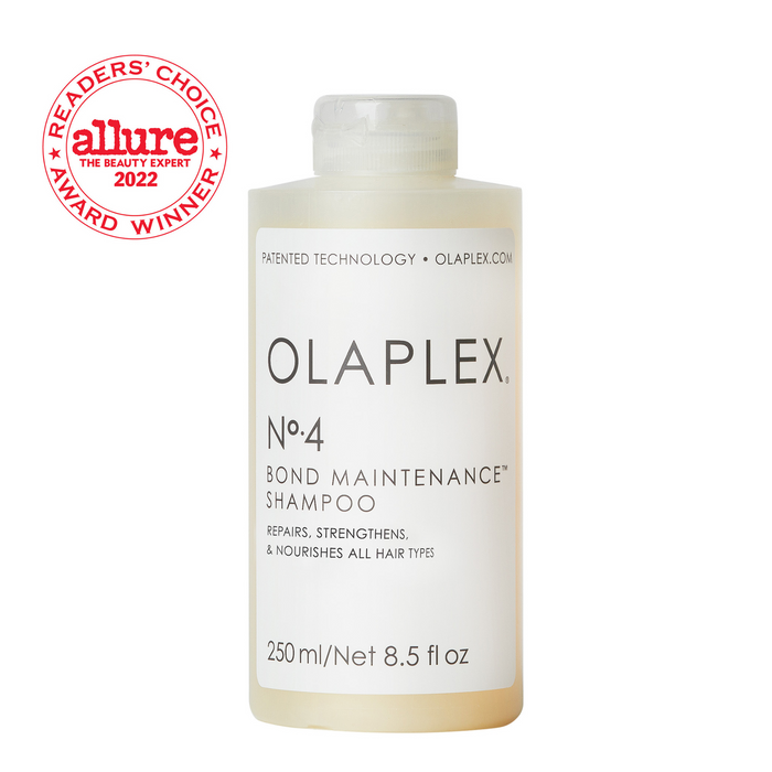 The Olaplex No.4 Bond Maintenance Shampoo is formulated with patented OLAPLEX Bond Building Chemistry that re-links broken bonds to protect and repair damaged hair, split ends and frizz. This sulphate-free, paraben-free, gluten-free, vegan, nut-free and completely colour safe shampoo is suitable for all hair types and is designed to strengthen and repair hair structure, reduce breakage, eliminate frizz and flyaways, and restore internal moisture levels for healthy, shiny and manageable hair.