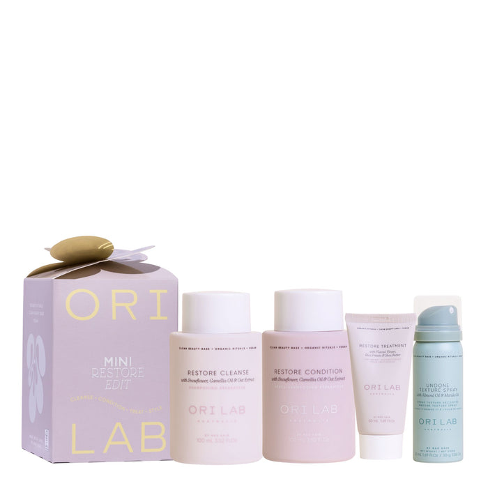 The ORI Lab Holiday Mini Quad Restore is a luxurious hair care set designed to rejuvenate and revitalize your hair.
