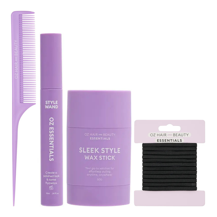 The Oz Essentials Slick Back Quad Bundle is your ultimate styling kit for achieving sleek and polished hairstyles.