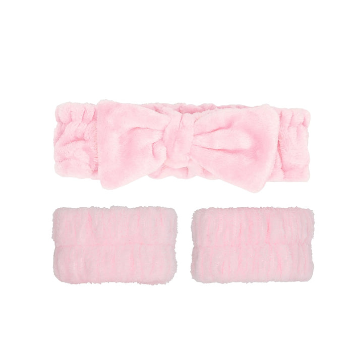 This bundle includes two essential accessories designed to enhance your skincare and beauty regimen. The headband and wrist bands are crafted from soft, absorbent materials, ensuring comfort and functionality. The charming pink color adds a touch of elegance to your daily routine, making it a must-have for beauty enthusiasts. Whether you're applying makeup, cleansing your face, or enjoying a spa day at home, this bundle provides the perfect solution to keep your hair and sleeves dry and clean.