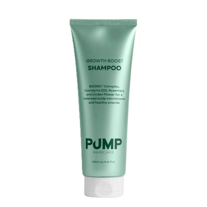 Pump Haircare Growth Boost Shampoo 250ml is designed to promote a balanced scalp microbiome and healthy hair strands.