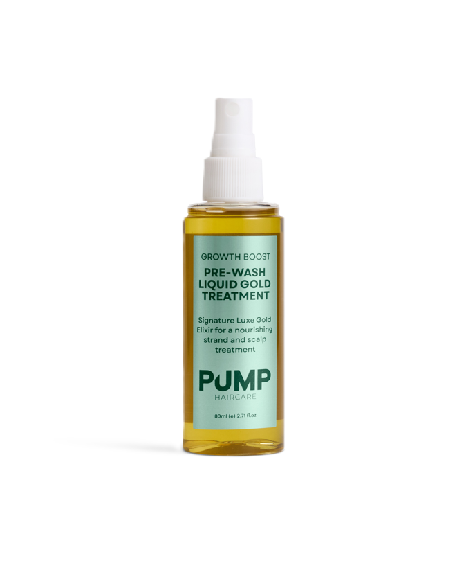 Revitalize your hair with the golden touch of Pump Haircare Growth Boost Pre-Wash Liquid Gold Treatment 80ml, a luxurious elixir designed to nourish and strengthen your locks from root to tip.