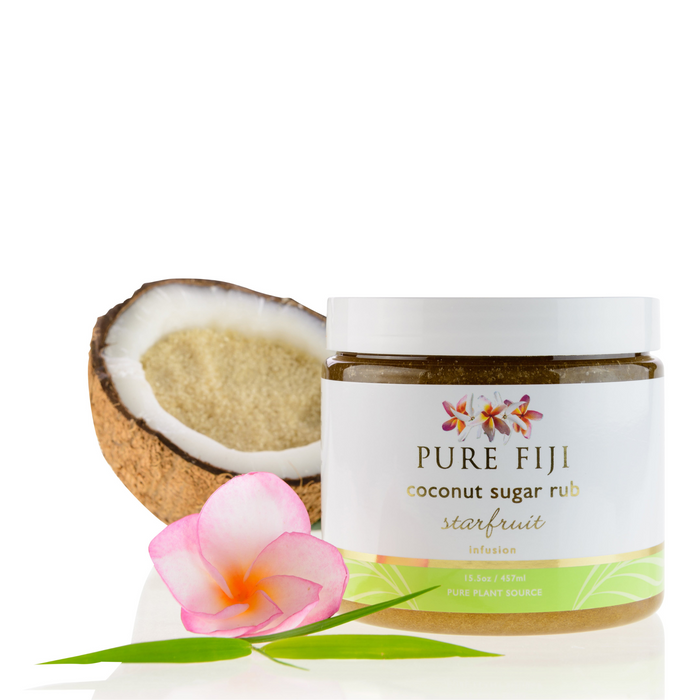 Pure Fiji Coconut Sugar Rub - Starfruit 457ml is a natural exfoliation and moisturizing treatment that renews and revitalizes dull, dry, and dehydrated skin.