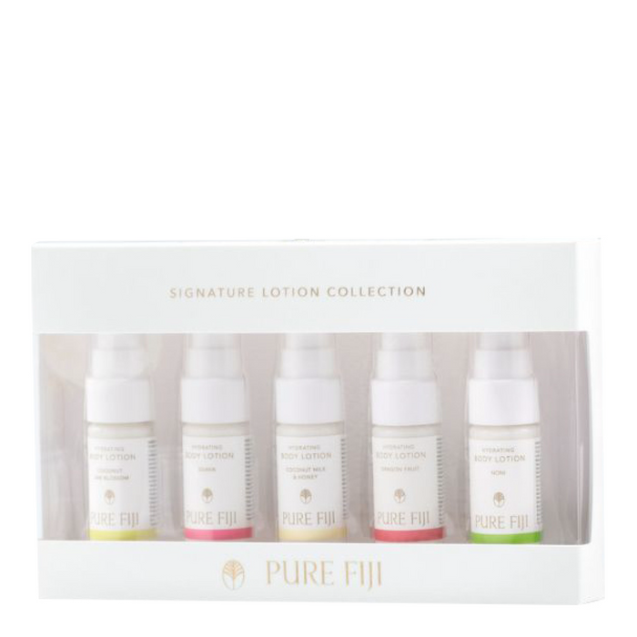 The Pure Fiji Signature Mini Body Lotion Pack is a luxurious collection of hydrating body lotions in a convenient travel size.