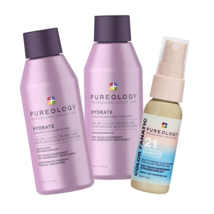 Pureology 3-Piece Freebie is a haircare gift set that includes a shampoo, conditioner, and hair mask to nourish and protect color-treated hair.