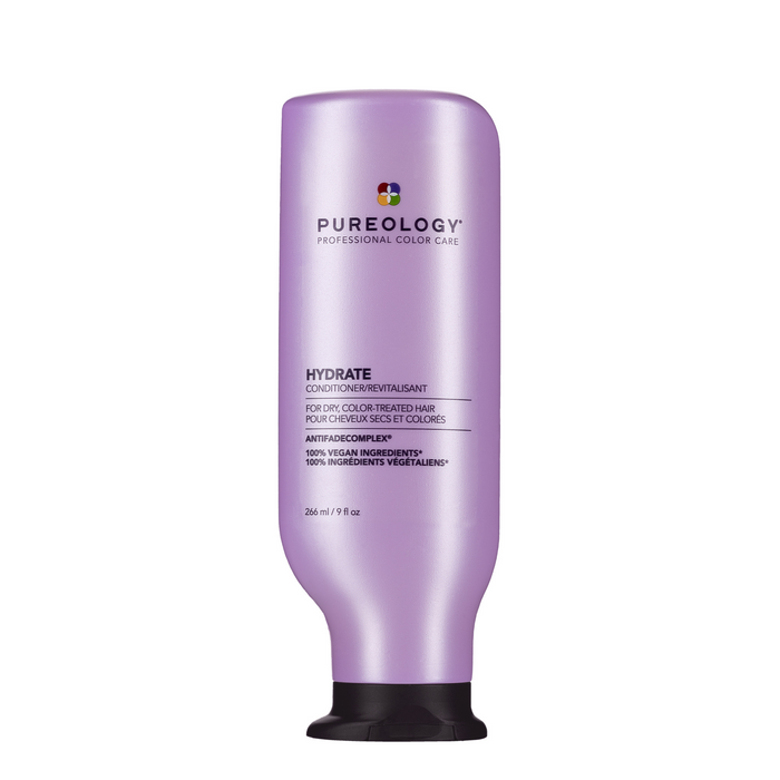 What are the benefits and features of Pureology Hydrate Conditioner 266ml?- Deeply hydrates normal to thick dry, colour-treated hair.