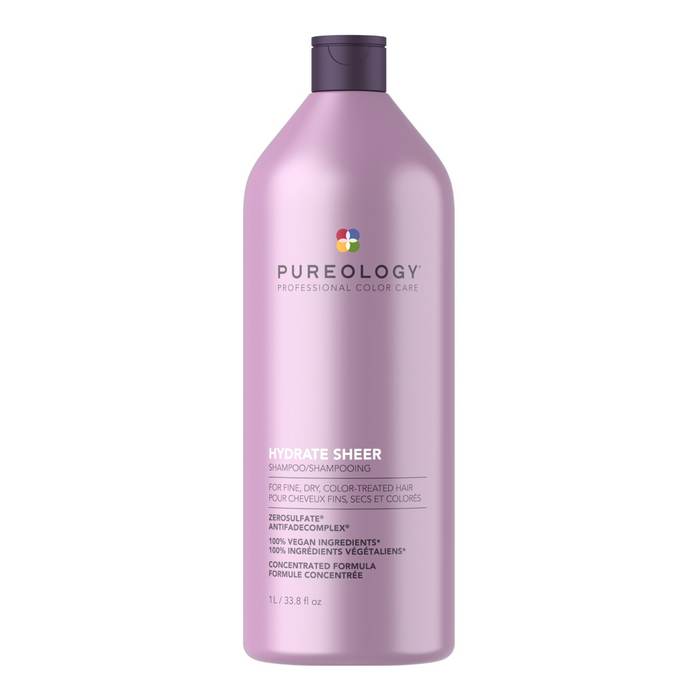 Pureology Hydrate Sheer Shampoo 1000ml is a lightweight, silicone-free shampoo that replenishes and detangles knot-prone fine, color-treated hair without weighing it down, while providing superior replenishment, touchable softness, and extraordinary color protection.