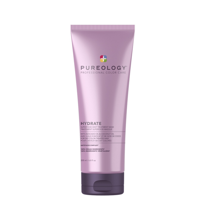 Pureology Hydrate Superfood Treatment 200ml is a moisturizing hair mask for dry, color-treated hair that moisturizes and softens.