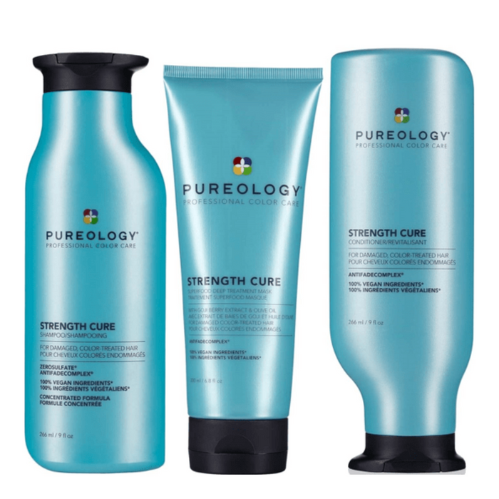 The Pureology Strength Cure Trio Bundle is the ultimate hair care solution for damaged and color-treated hair.