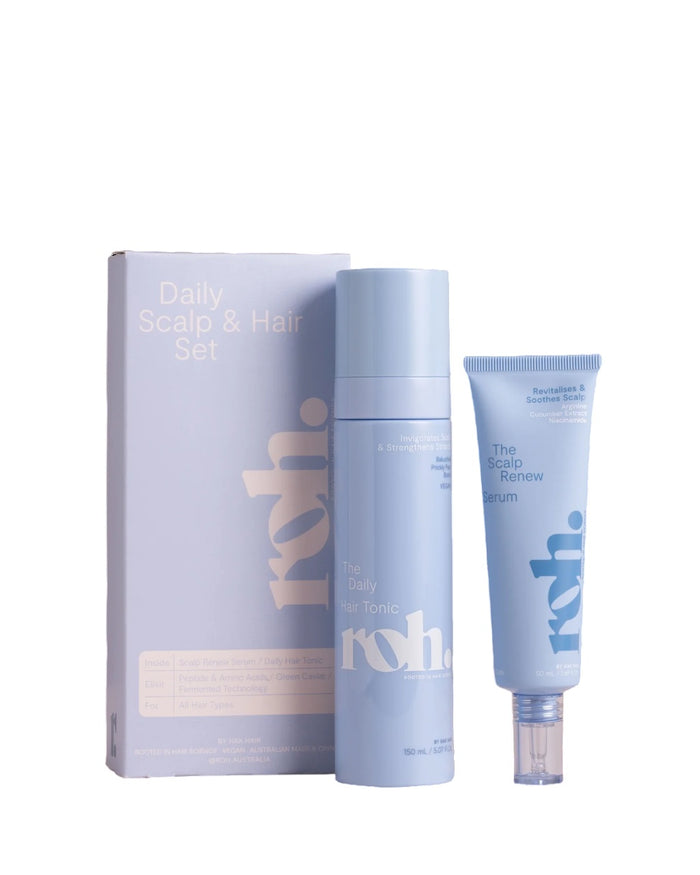 The ROH Daily Scalp and Hair Set is a comprehensive solution for maintaining healthy hair and scalp.