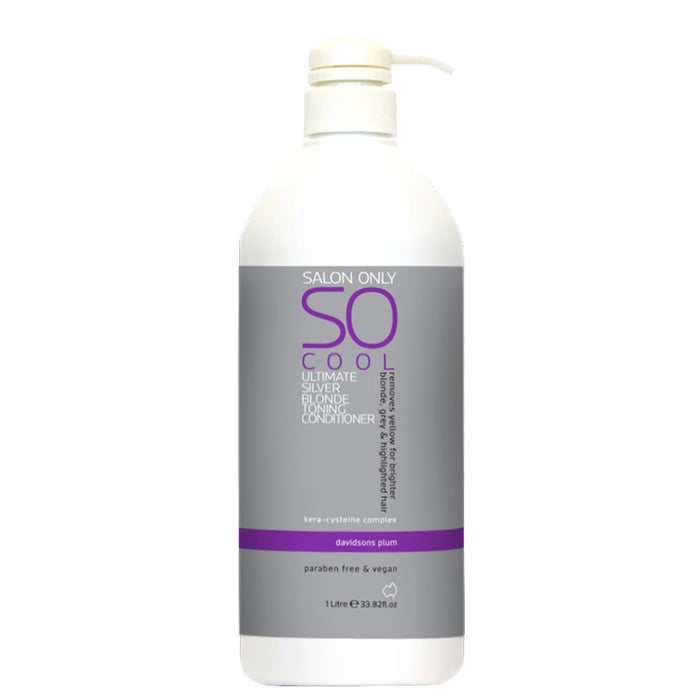 What are the benefits and features of Salon Only Cool Ultimate Silver Blonde Toning Conditioner 1000ml?- Brilliantly tones blonde, grey, and highlights to help remove yellow tones or brassiness.