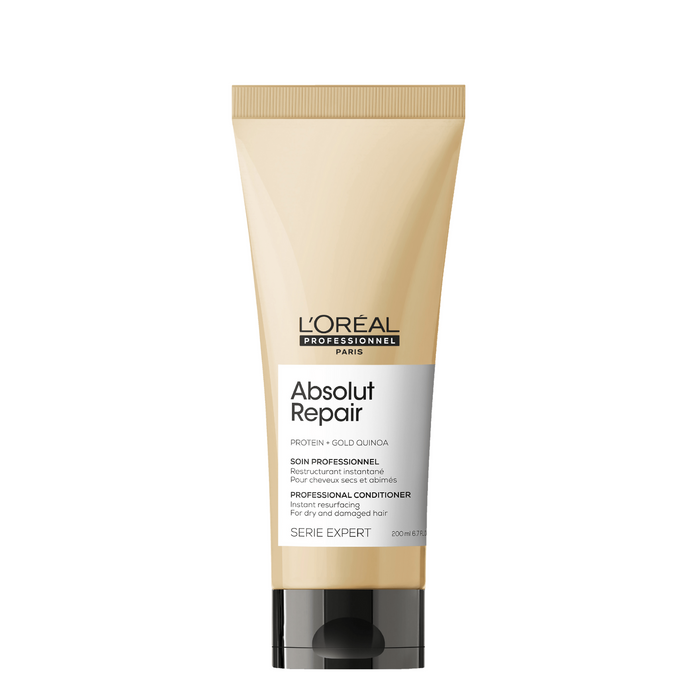 What are the benefits and features of L'Oréal Professionnel Absolut Repair Conditioner 200ml?- Visibly resurfaces and strengthens damaged hair fiber with a very light and soft touch.