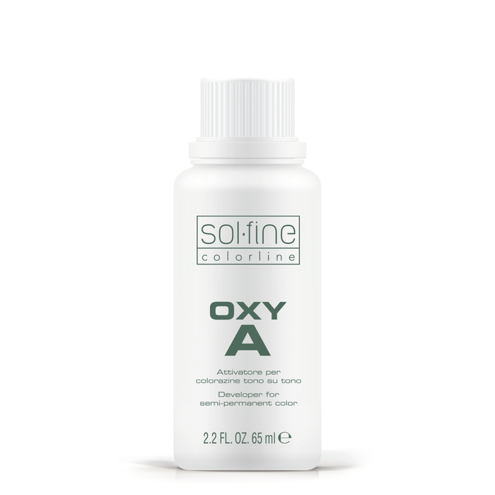 The Solfine Crema Oxy A Semi-Permanent Peroxide 65ml is a gentle developer designed for optimal hair coloring results.