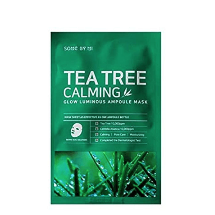 SOME BY MI 30 Days Tea Tree Calming Glow Luminous Ampoule Mask is a hypoallergenic mask sheet that helps control sebum levels, and care for pores with a soothing and calming effect.