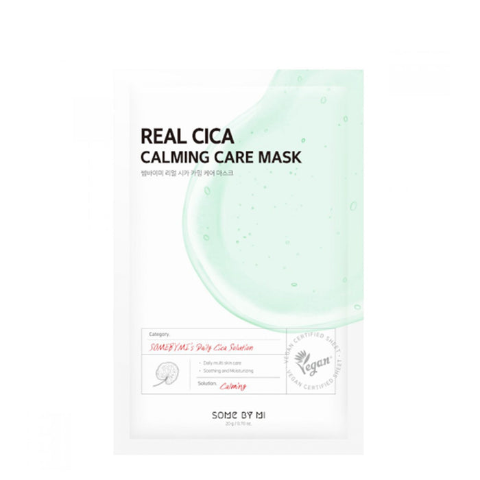 Calm and Repair: Some By Mi's Real Care Real Cica Calming Care Mask is a game-changing addition to your skincare regimen. This sheet mask is infused with Centella Asiatica extract, a natural ingredient renowned for its soothing and skin-healing properties, providing your skin with a tranquil and revitalizing experience.
