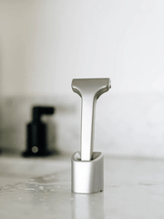 The Supply Single Edge Razor Stand (Pro - Classic Matte) is a custom-designed stand that fits your razor perfectly, keeping it high above the sink to dry and increase the lifespan of each razor blade.
