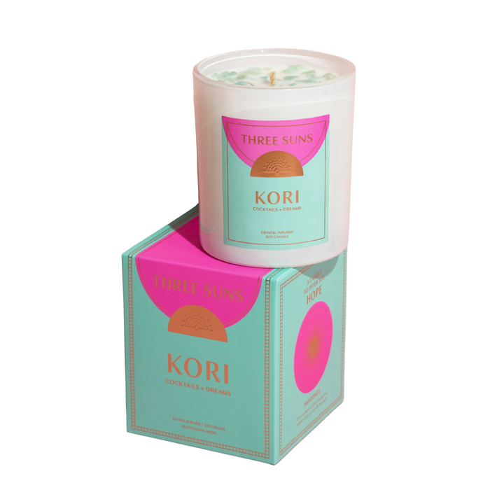 Experience tranquility with the Three Suns Kori Crystal Infused Candle Of Hope 300g - Cocktails & Dreams.