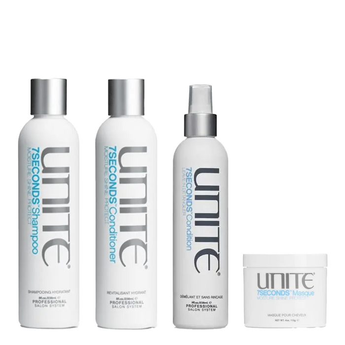 • Unite 7Seconds Shampoo 300ml • Unite 7Seconds Conditioner 236ml • Unite 7Seconds Leave In Detangler 236ml • Unite 7Seconds Masque 113g