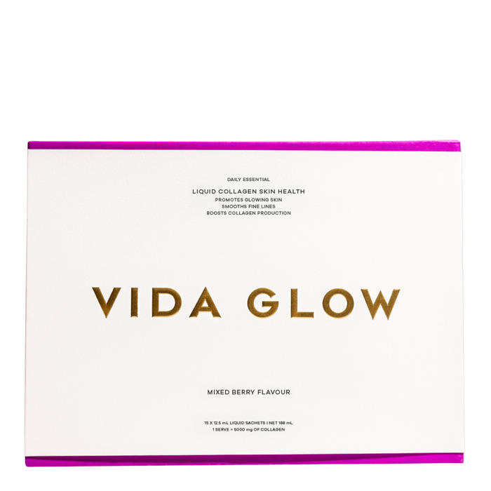 Vida Glow Liquid Collagen Skin Health Mixed Berry 15 x 12.4ml is a delicious and convenient way to support your skin's health and vitality.