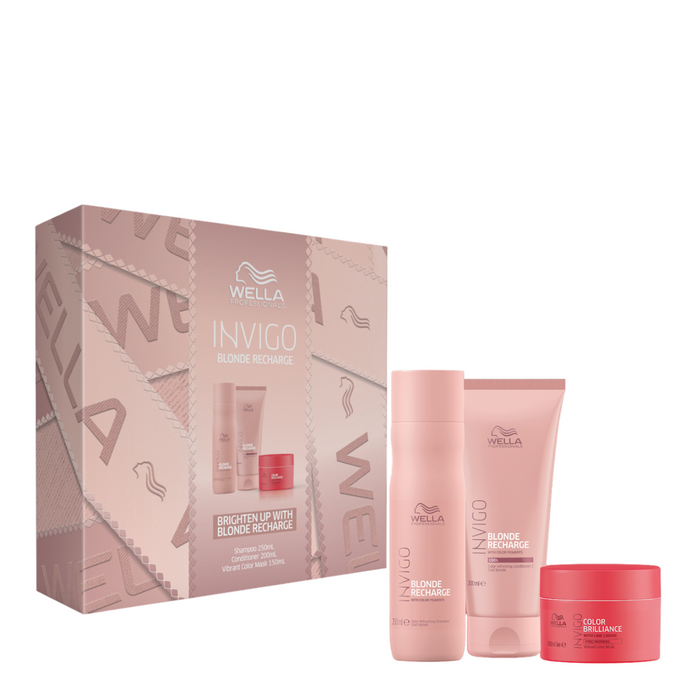 The Wella Professionals Invigo Blond Recharge Trio Pack is the ultimate hair care solution for maintaining vibrant, cool blonde tones.