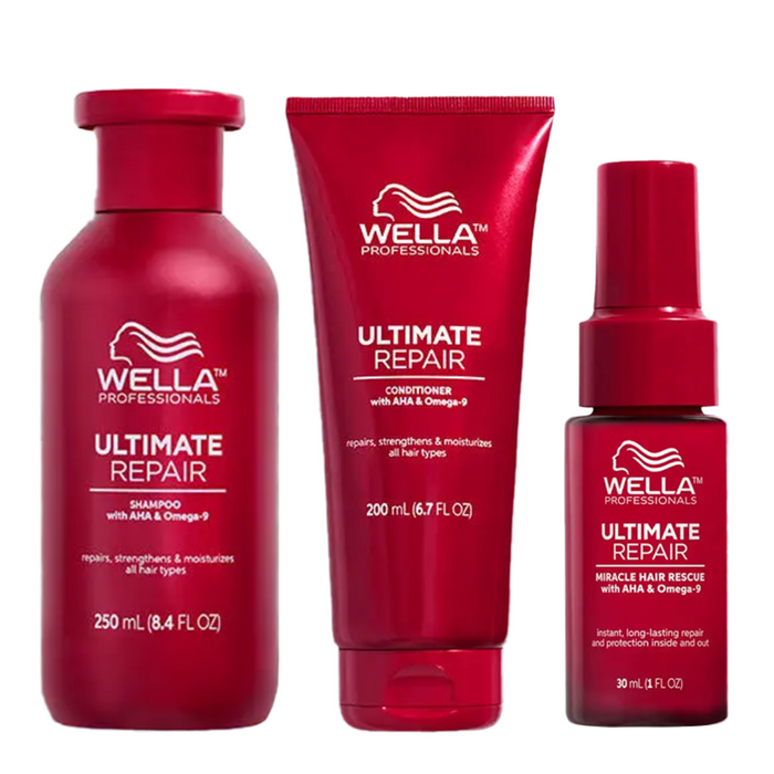 The Wella Professionals Ultimate Repair Trio Bundle w/Miracle Rescue 30ml is the ultimate solution for damaged hair.
