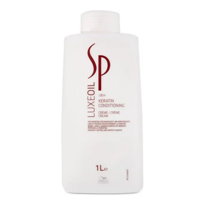 Wella SP System Professional Luxeoil Keratin Conditioning Cream 1000ml is a professional cream conditioner that gently cleanses impurities while penetrating the hair with keratin and panthenol for strength and reconstruction.